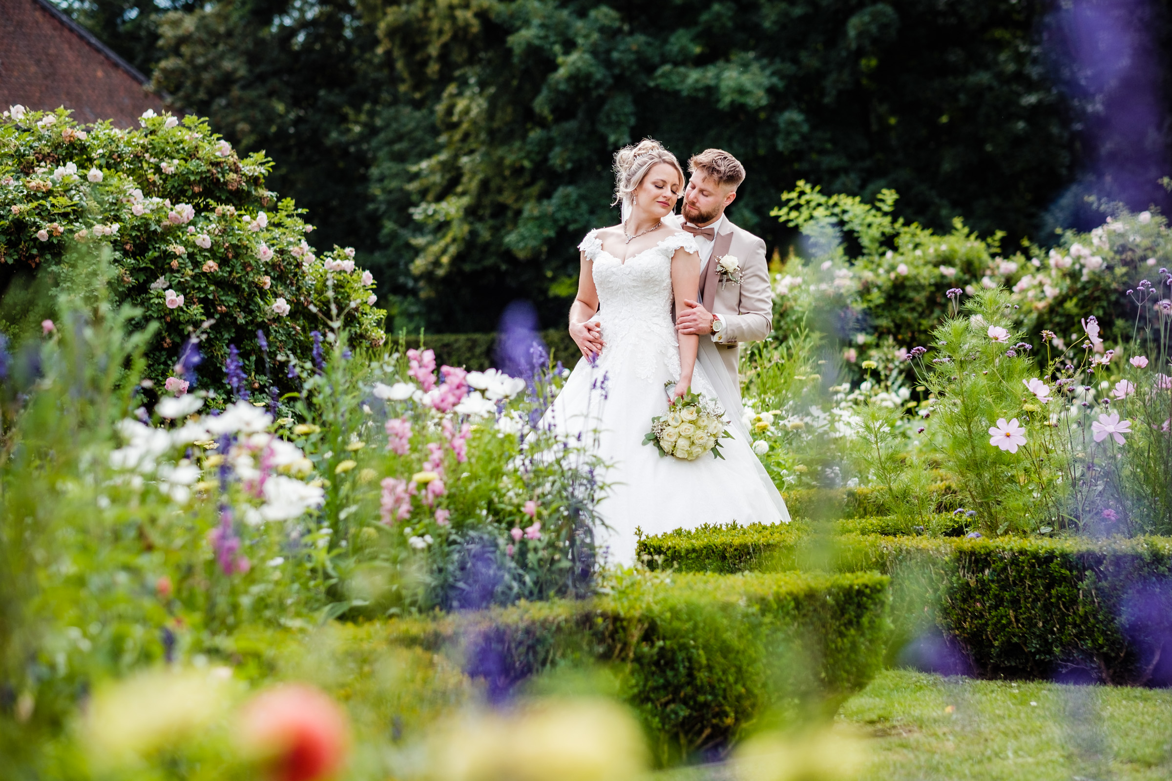 Der Französische Garten: Ideal für Paarfotos mit architektonischer Struktur und floraler Pracht.