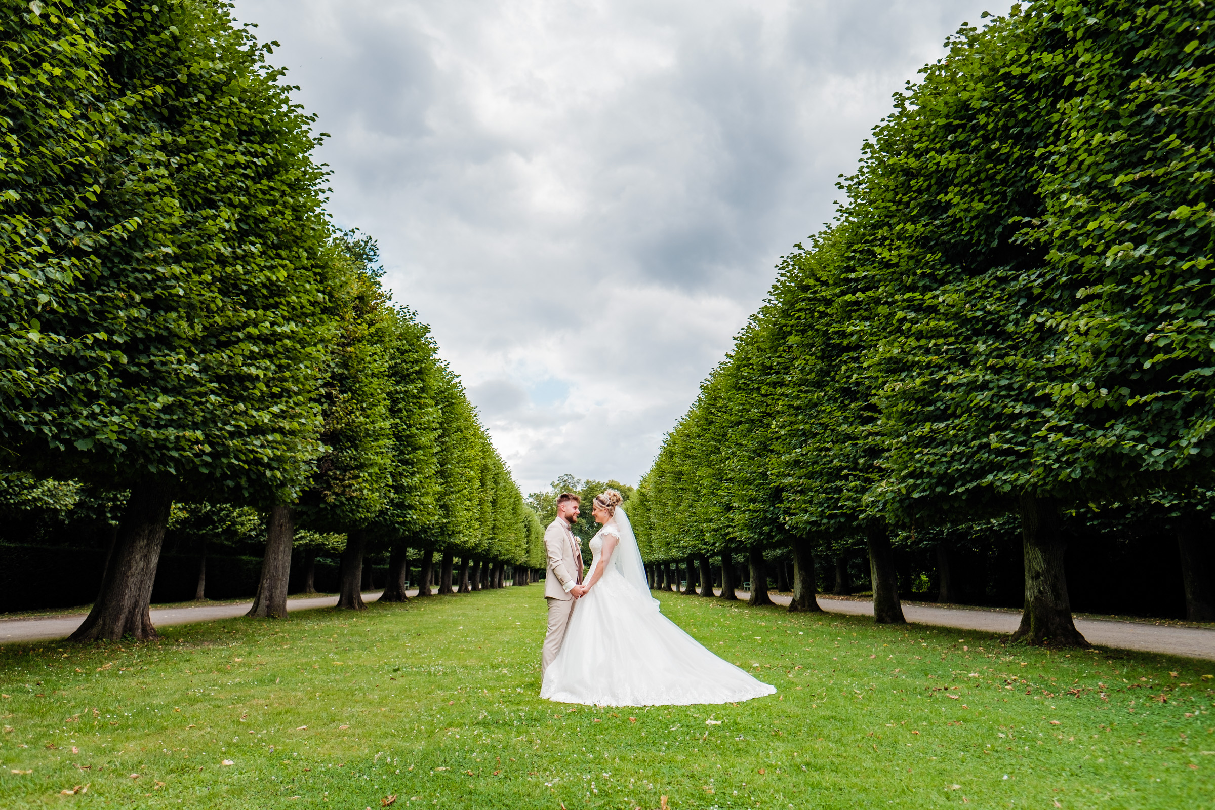 Wenn wir über ausgefallene Hochzeitsfotos in Düsseldorf sprechen, ist der Schlosspark Benrath der „Place to Be“. Hier verbinden wir klassische Eleganz mit modernem Fine-Art-Stil: