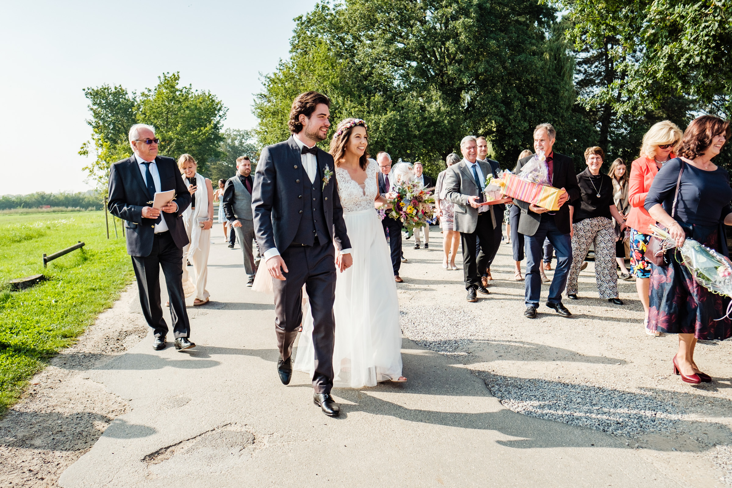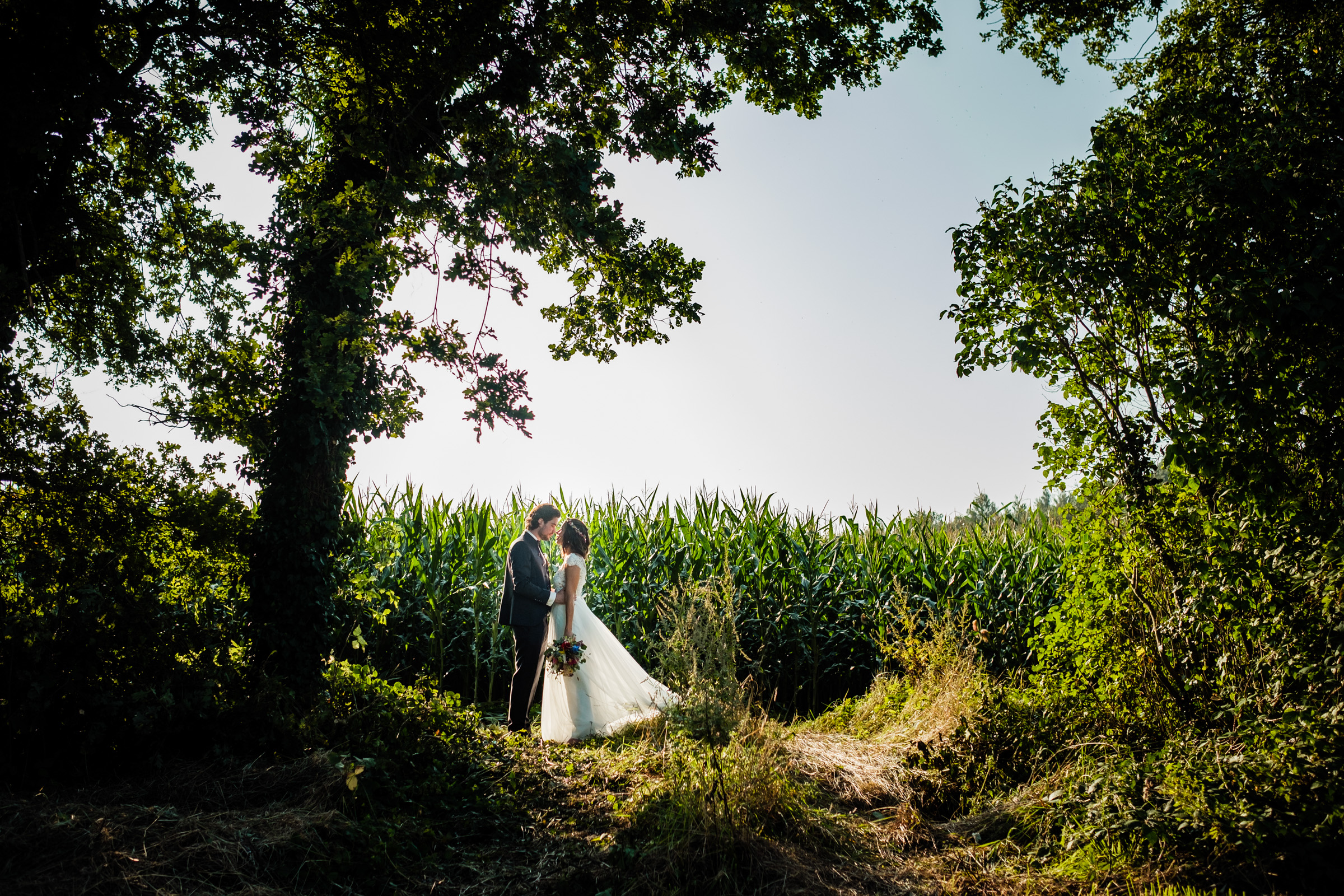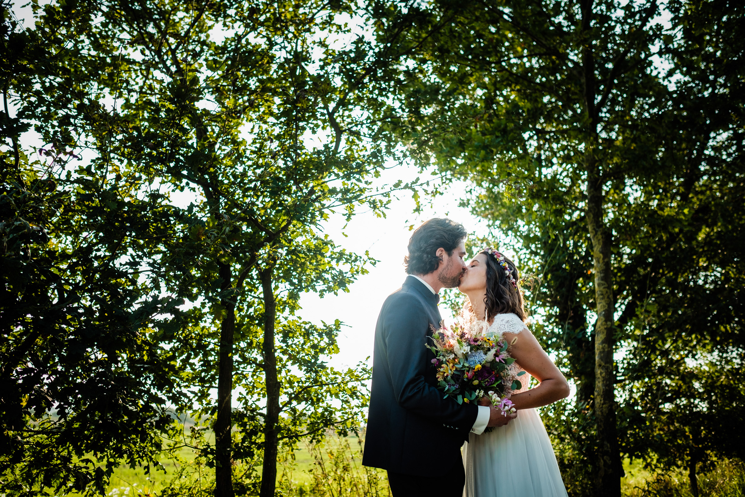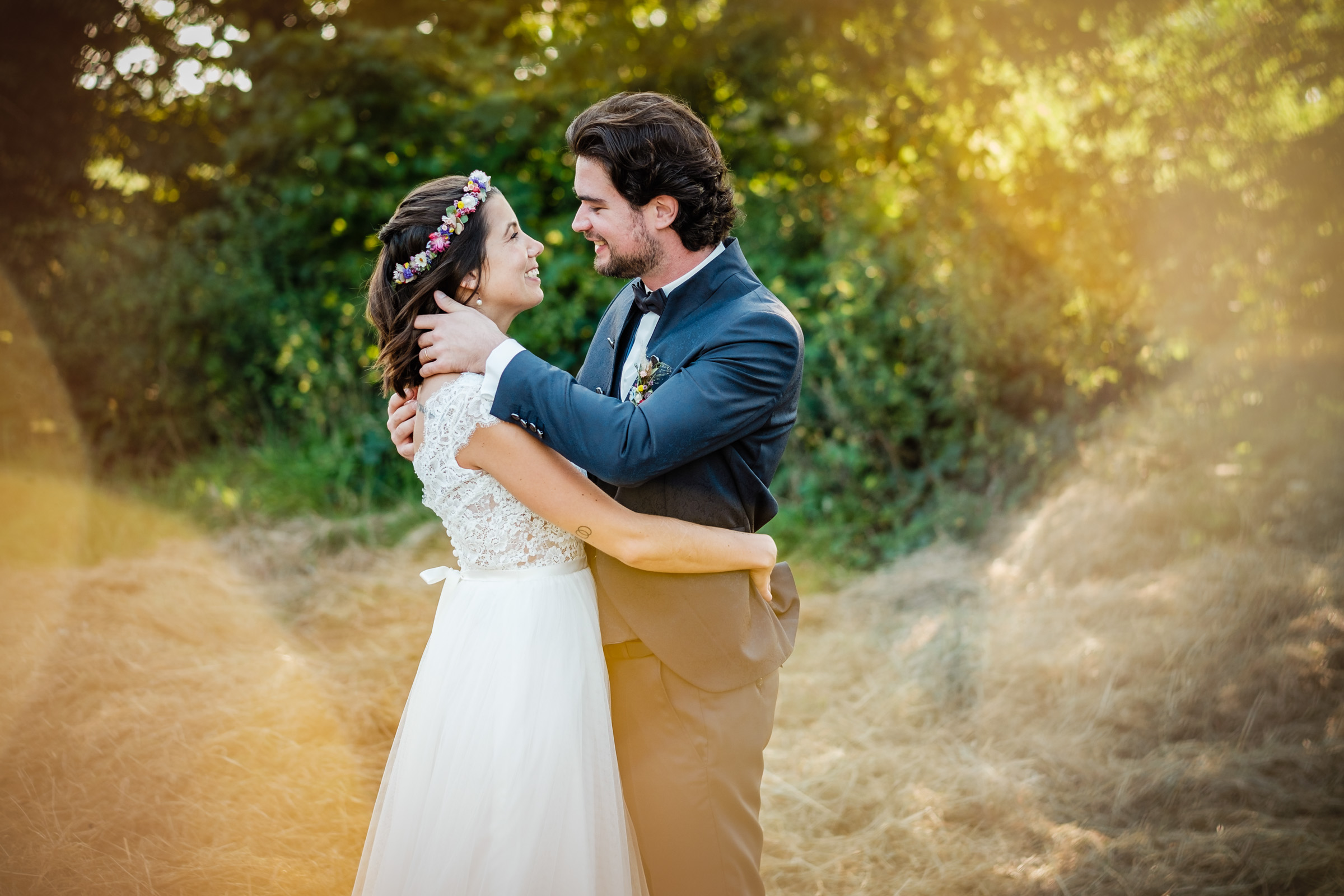 Gerade im Sommer, wenn das Licht in den Abendstunden weich wird, bietet die ländliche Umgebung rund um das Café Kornblume Möglichkeiten für ein Brautpaar-Shooting, das zeitlos und emotional zugleich ist.