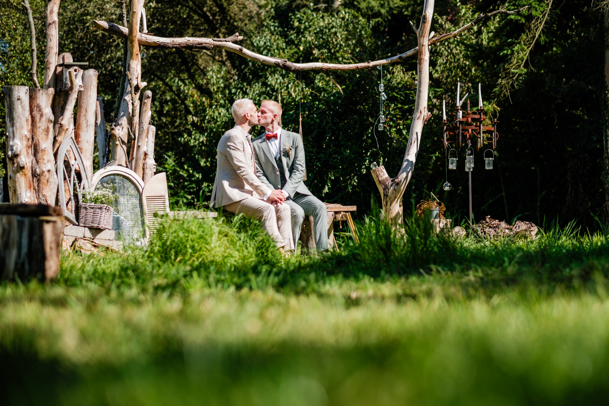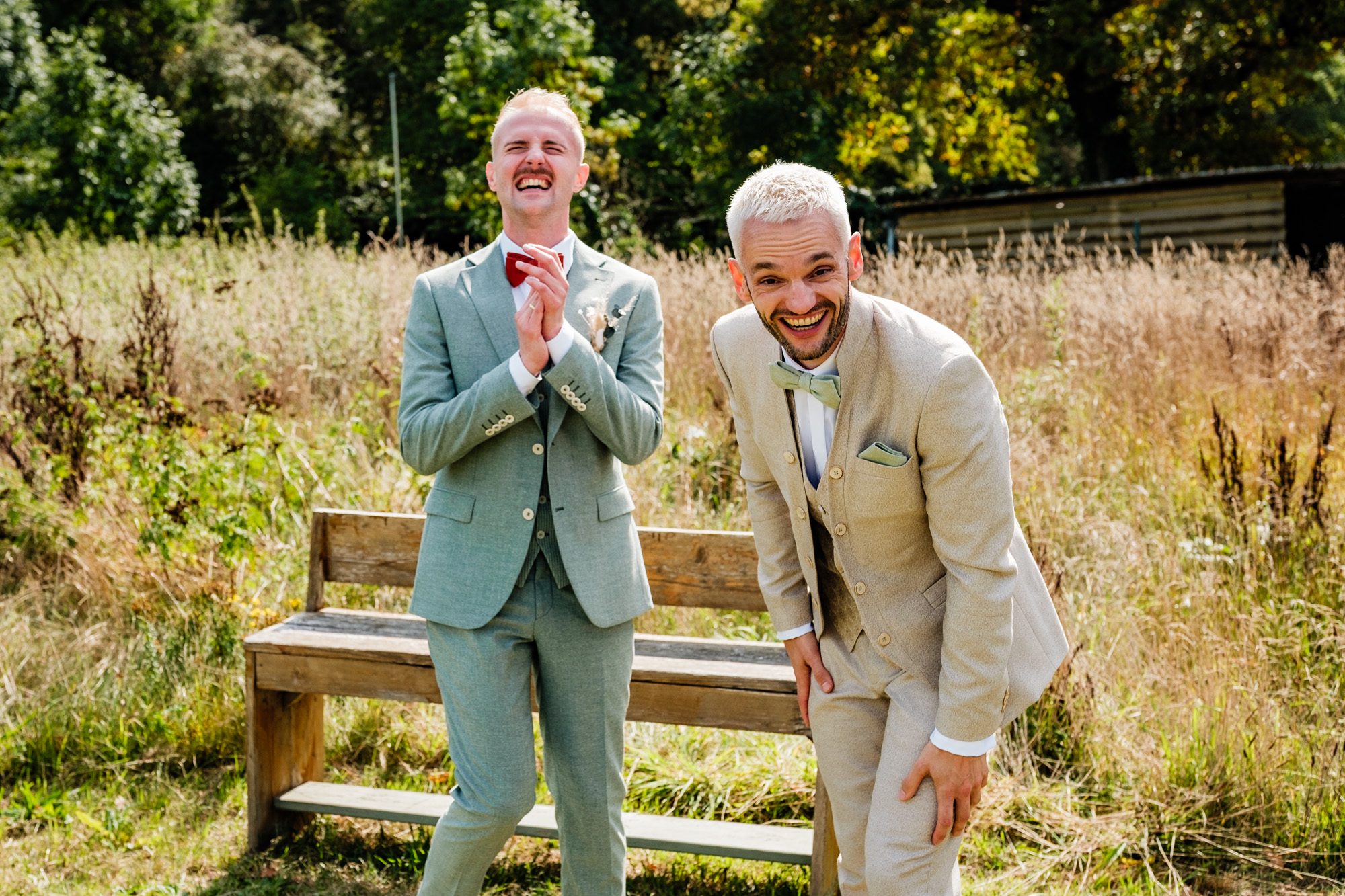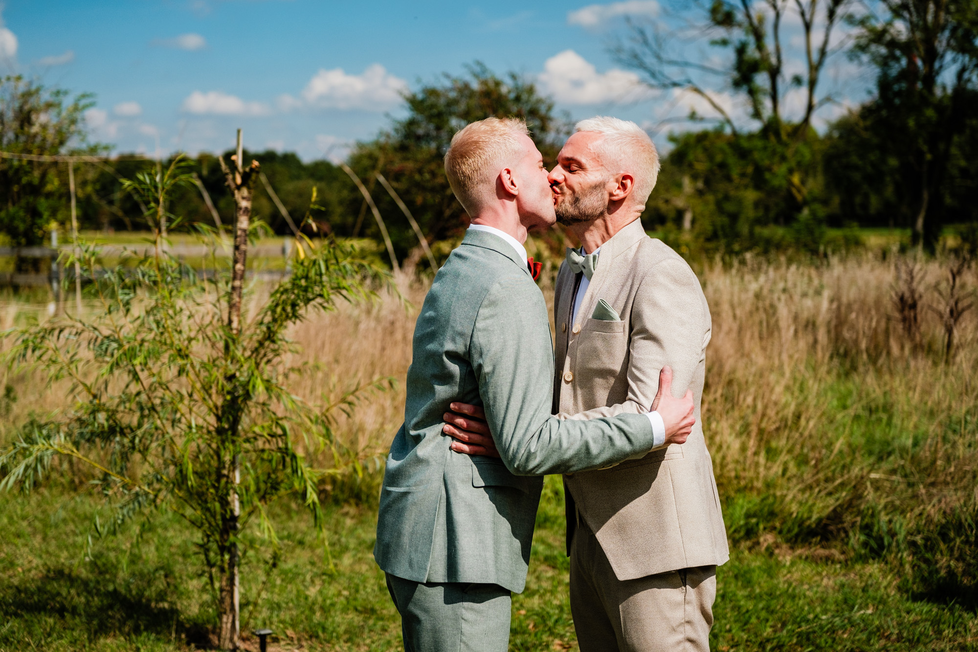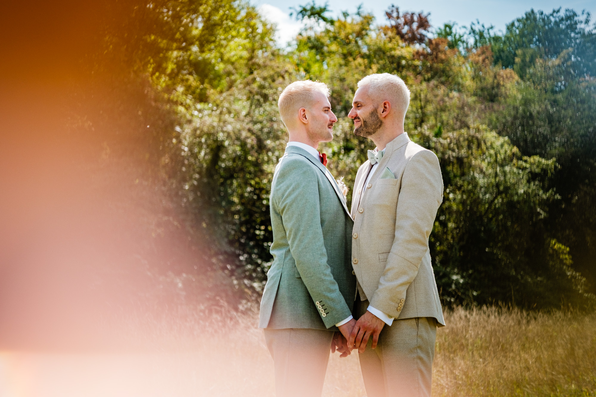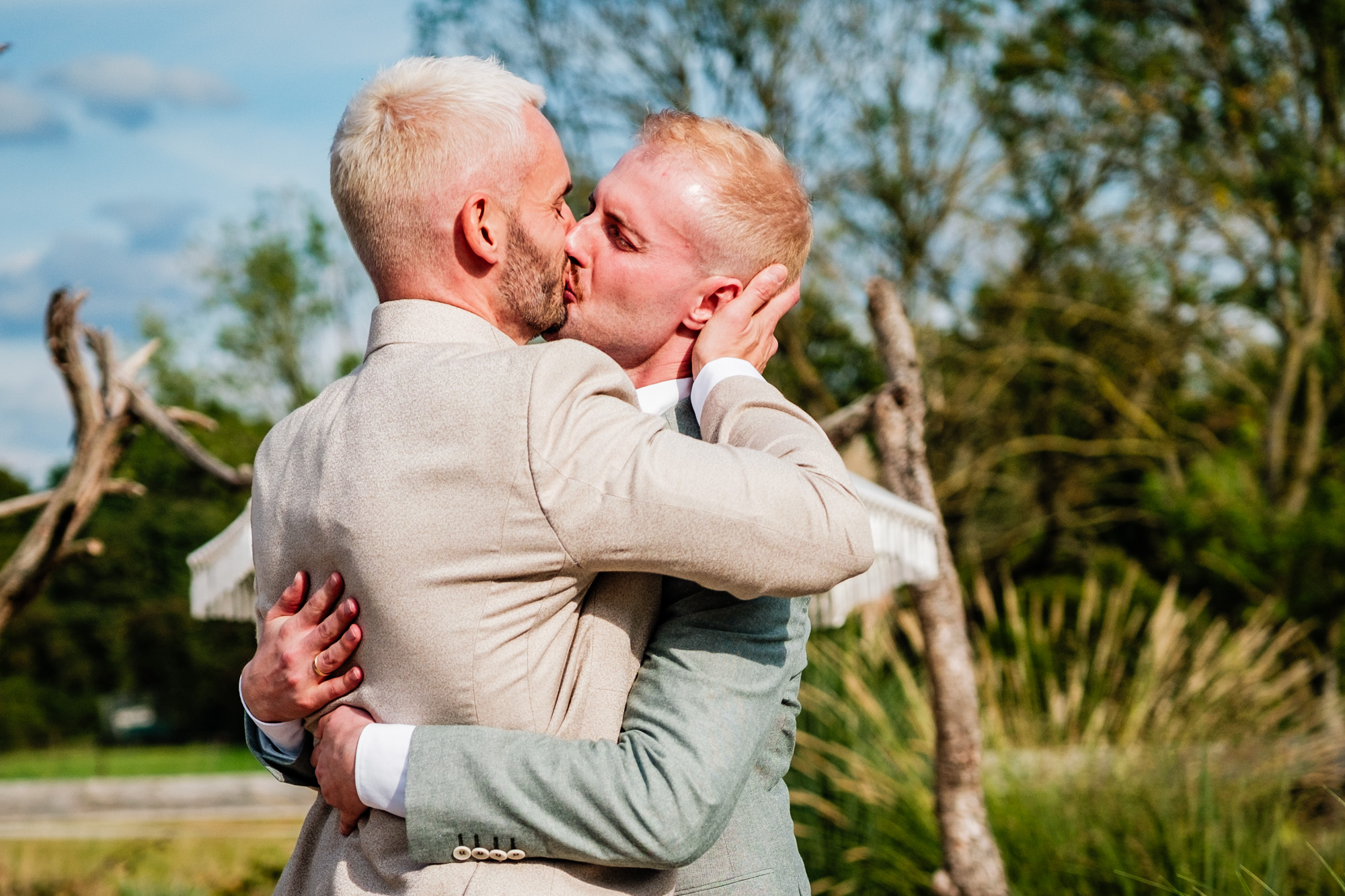 Der Tag startete mit einem emotionalen First Look im Garten des Freya Duisburg. inmitten des Grün begegneten sich Tobi und Chris zum ersten Mal in ihren tollen Hochzeitsoutfits. Dieser intime Moment vor der Zeremonie ist immer einer meiner liebsten Augenblicke als Hochzeitsfotograf – voller Aufregung, Liebe und echter Emotionen.
