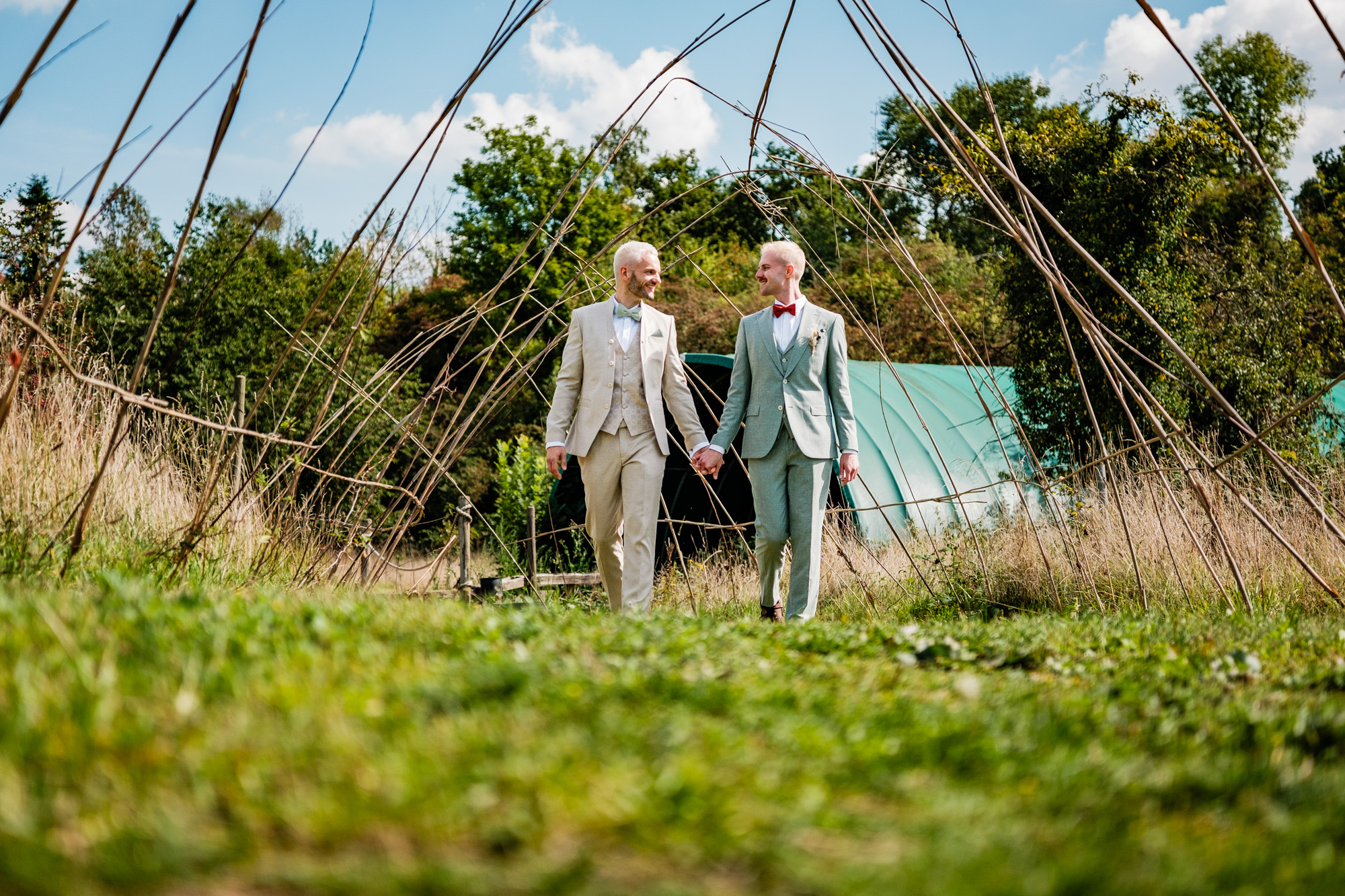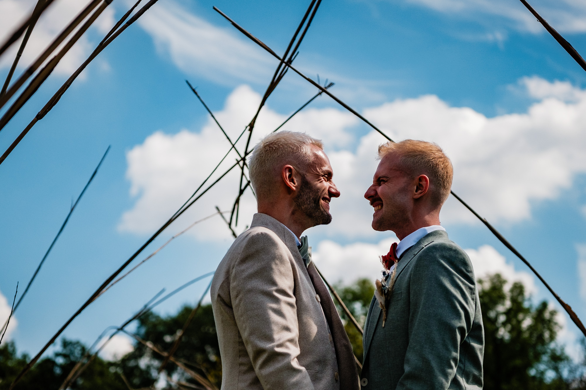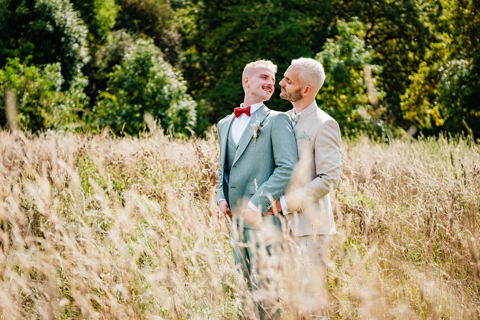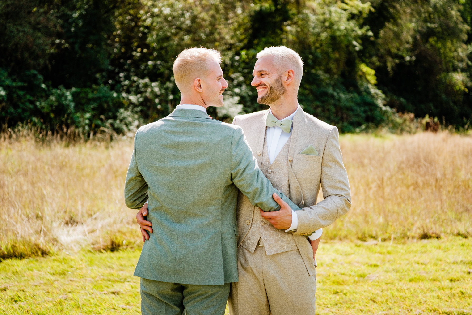 Der Tag startete mit einem emotionalen First Look im Garten des Freya Duisburg. inmitten des Grün begegneten sich Tobi und Chris zum ersten Mal in ihren tollen Hochzeitsoutfits. Dieser intime Moment vor der Zeremonie ist immer einer meiner liebsten Augenblicke als Hochzeitsfotograf – voller Aufregung, Liebe und echter Emotionen.