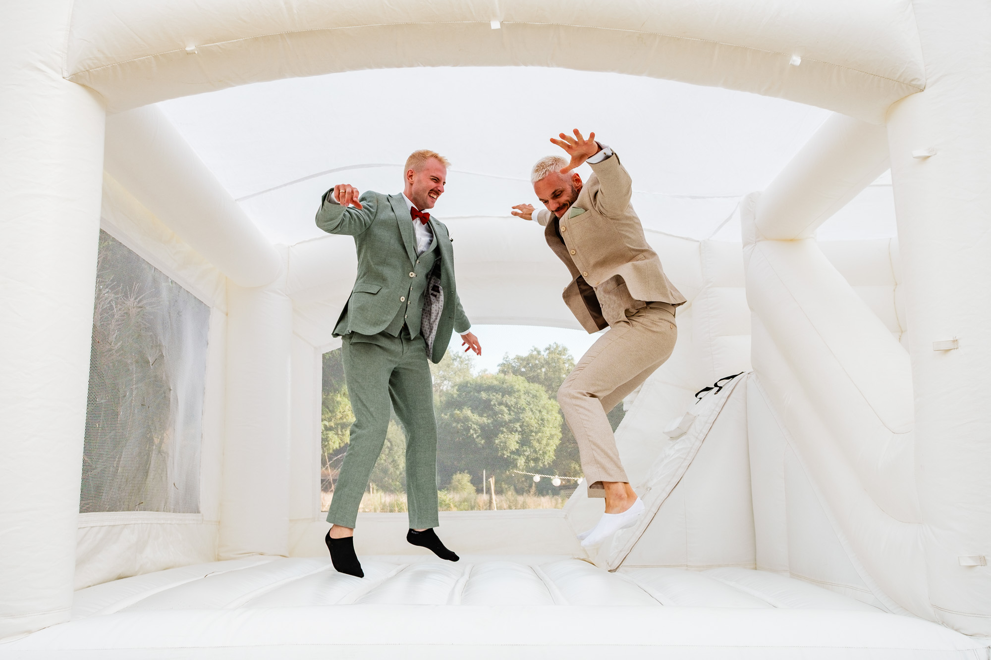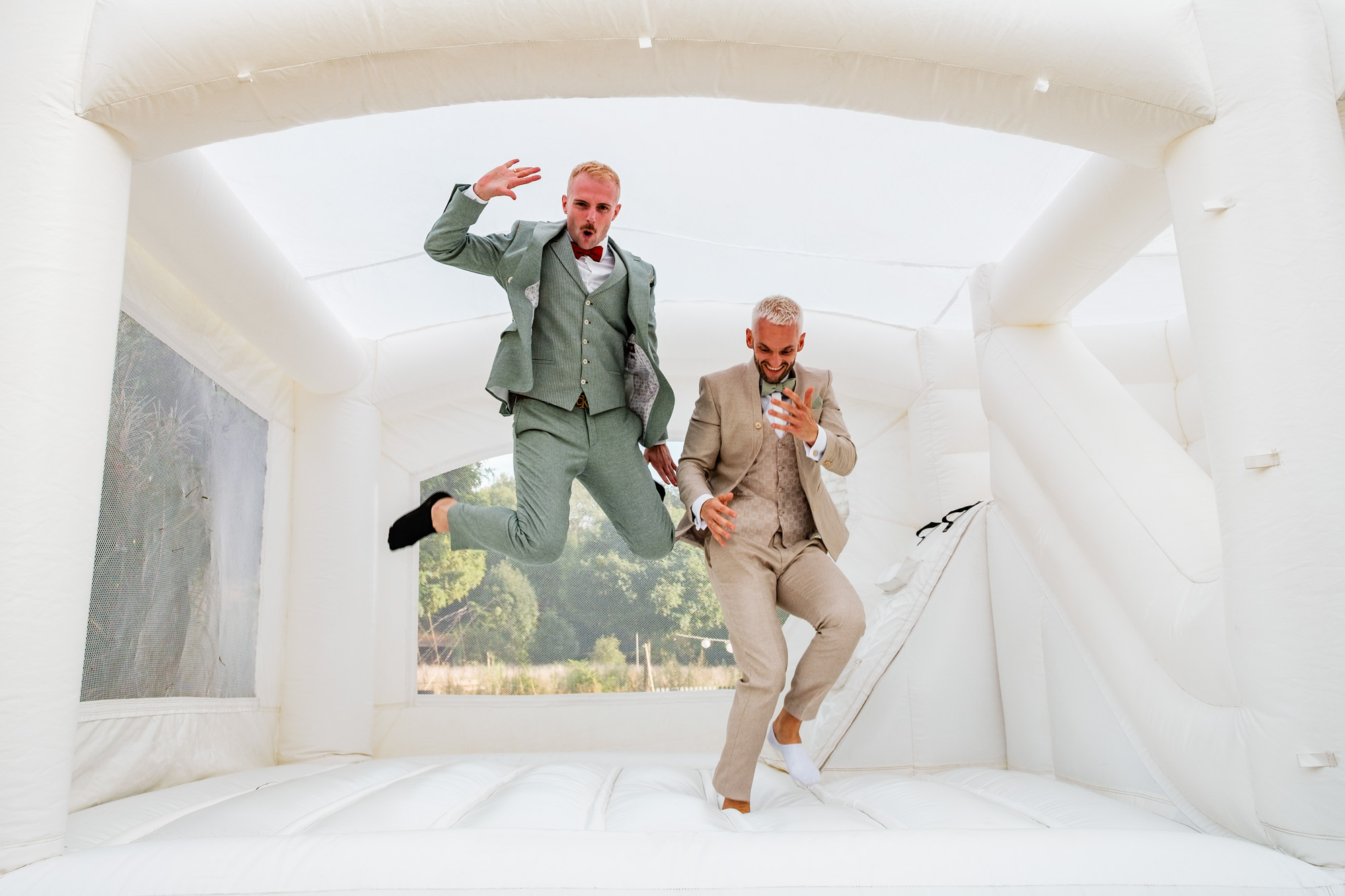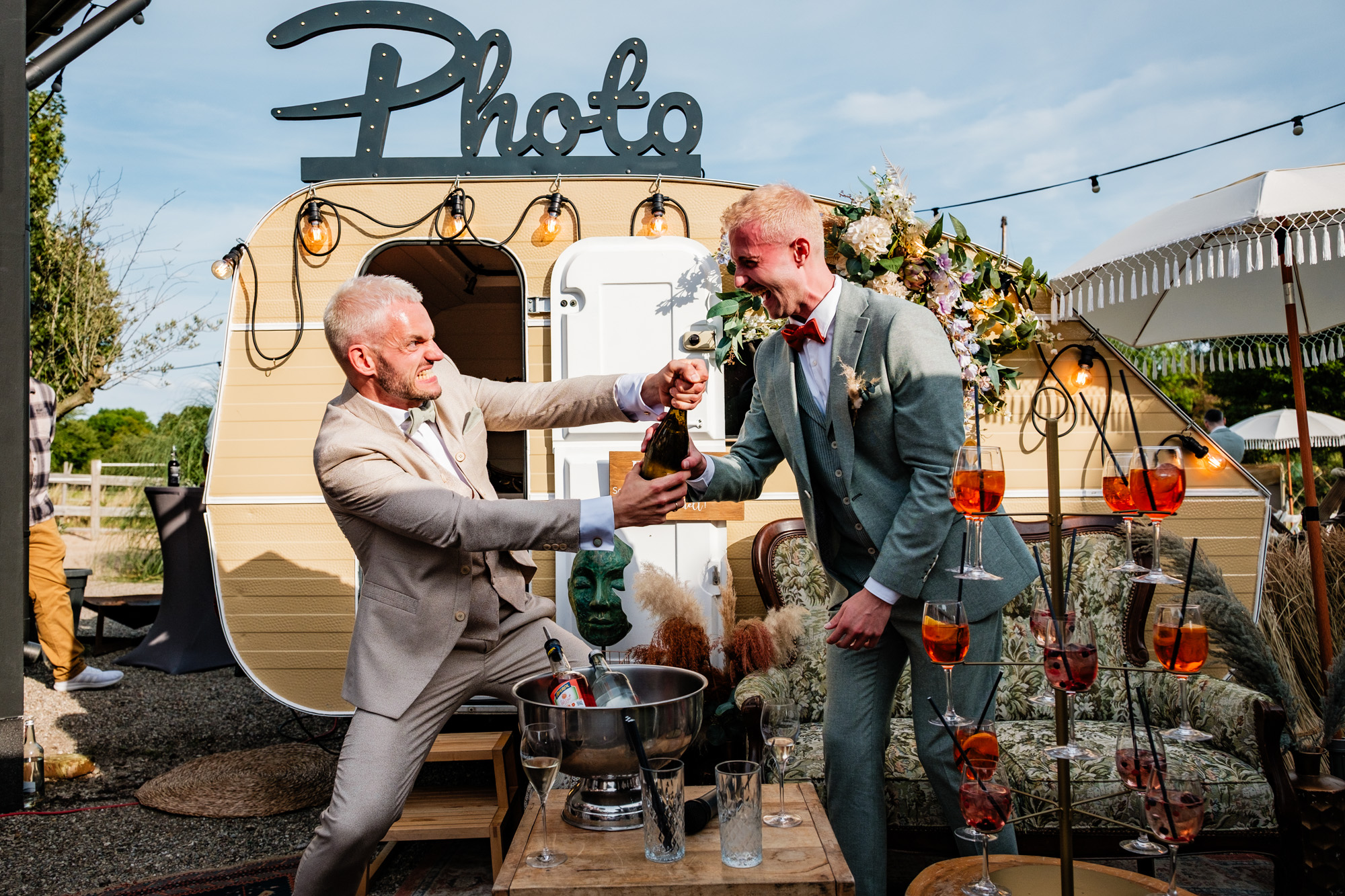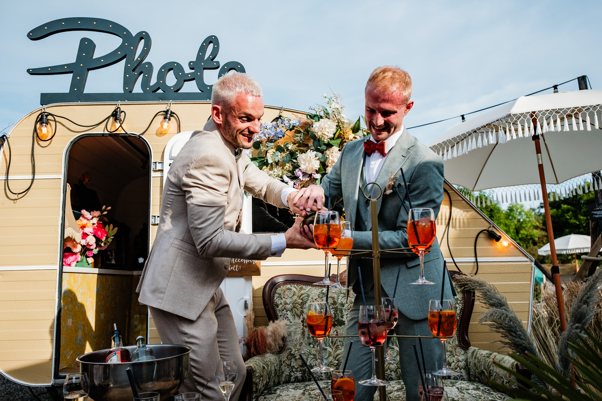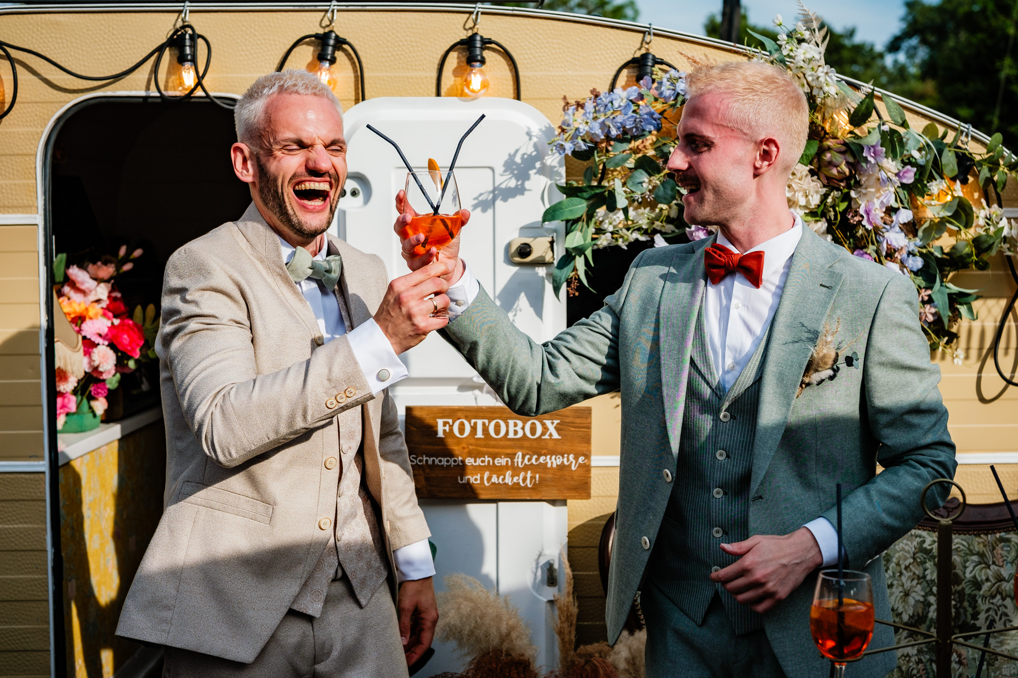 Auch im Anschluss wurde die ausgelassene Sommerstimmung weitergetragen: Eine originelle Aperol-Torte sorgte für staunende Gesichter, während die Hüpfburg und der Fotocamper für beste Unterhaltung und viele authentische Erinnerungsfotos sorgten. Genau solche Momente liebe ich als Hochzeitsfotograf Duisburg – spontan, fröhlich und voller Leben.