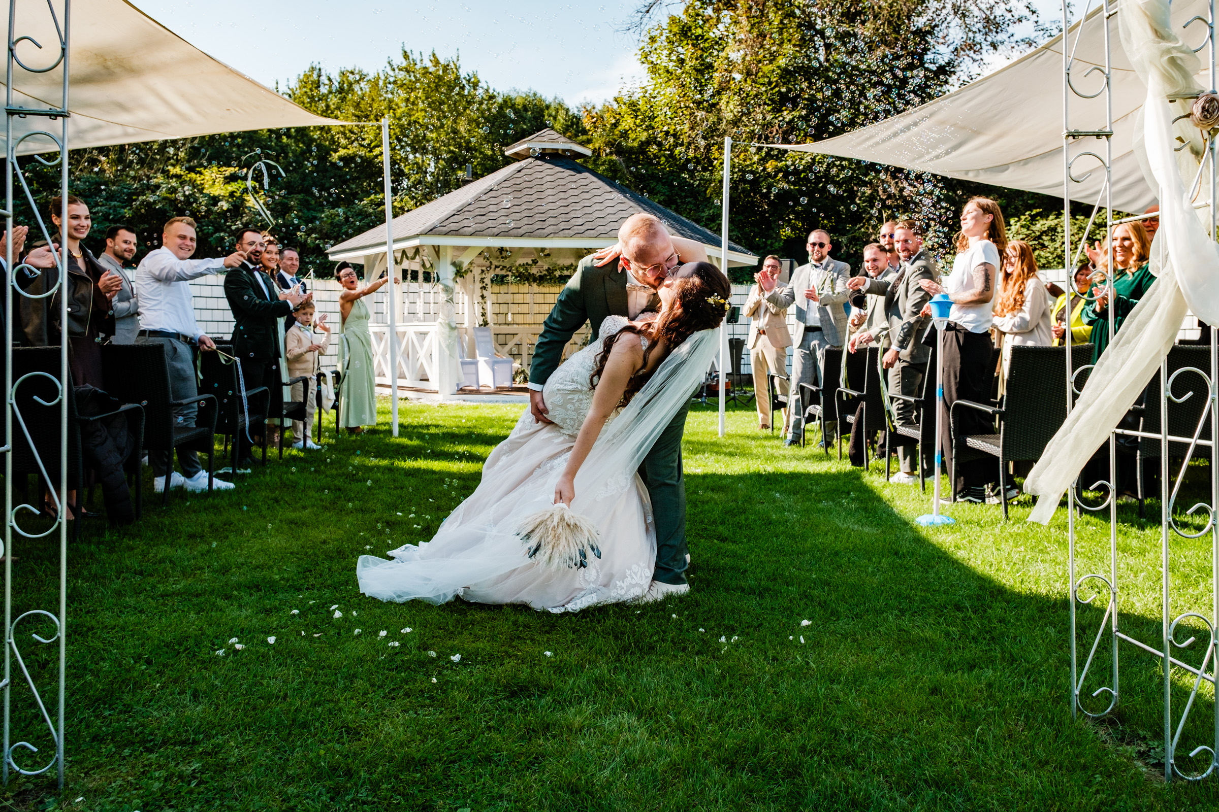 Jede Hochzeit ist einzigartig. Bei Angelina und Albert waren es die kleinen Details: das Lachen beim Sektempfang auf der Terrasse und die ausgelassene Party am Abend. Als euer Hochzeitsfotograf für dich ist es mein Ziel, genau diese echte Atmosphäre einzufangen – ungestellt und voller Emotionen.