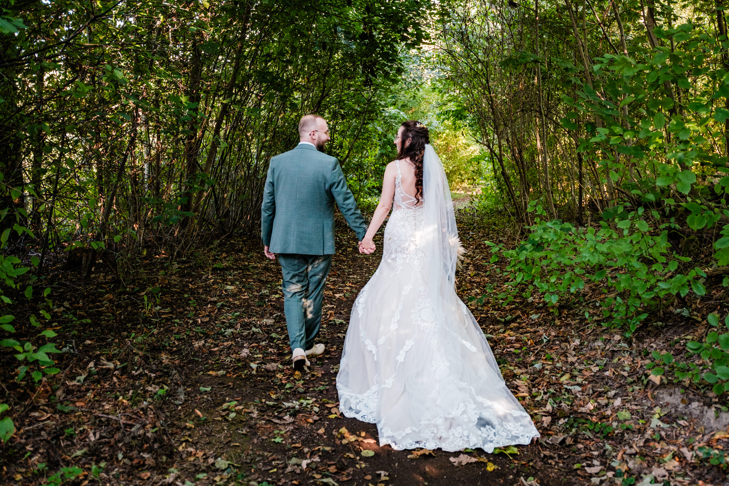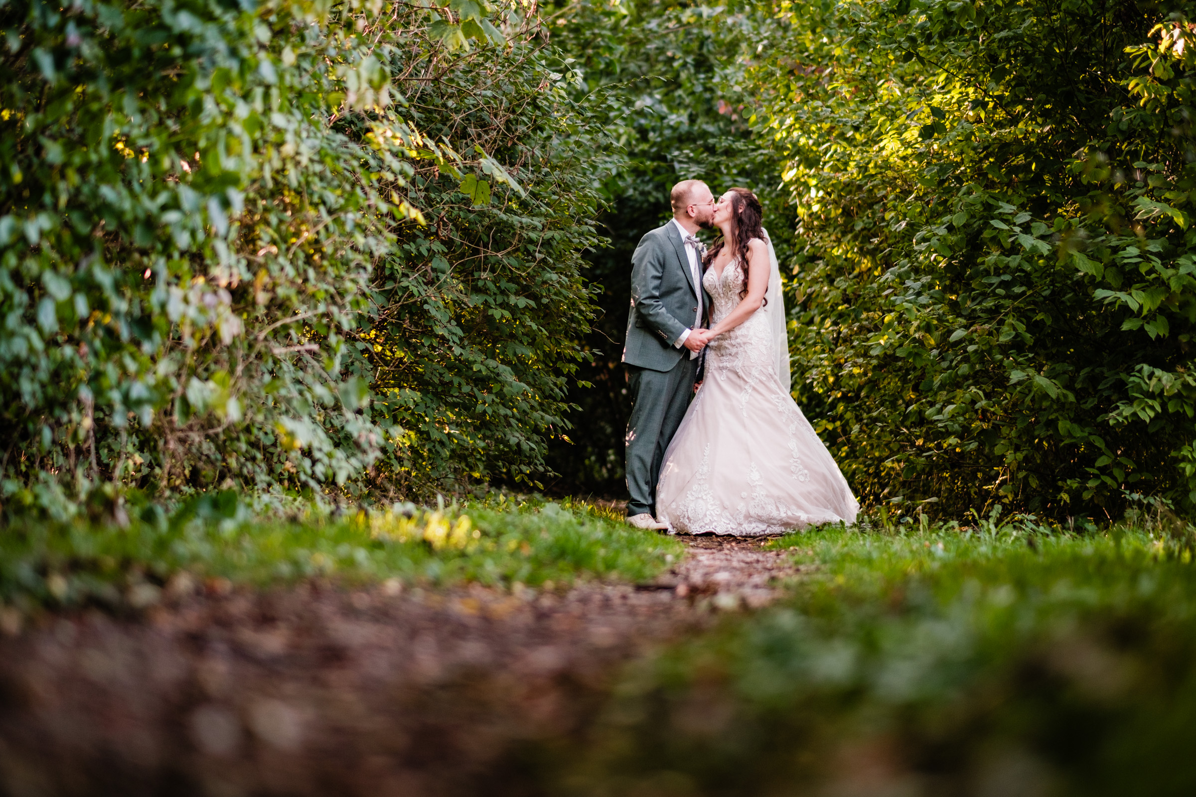 • Das Paarshooting: Wir mussten nicht weit fahren. Direkt vor der Tür des Restaurants finden sich traumhafte Pfade und Lichtungen, die perfekt für zeitlose Hochzeitsportraits sind.