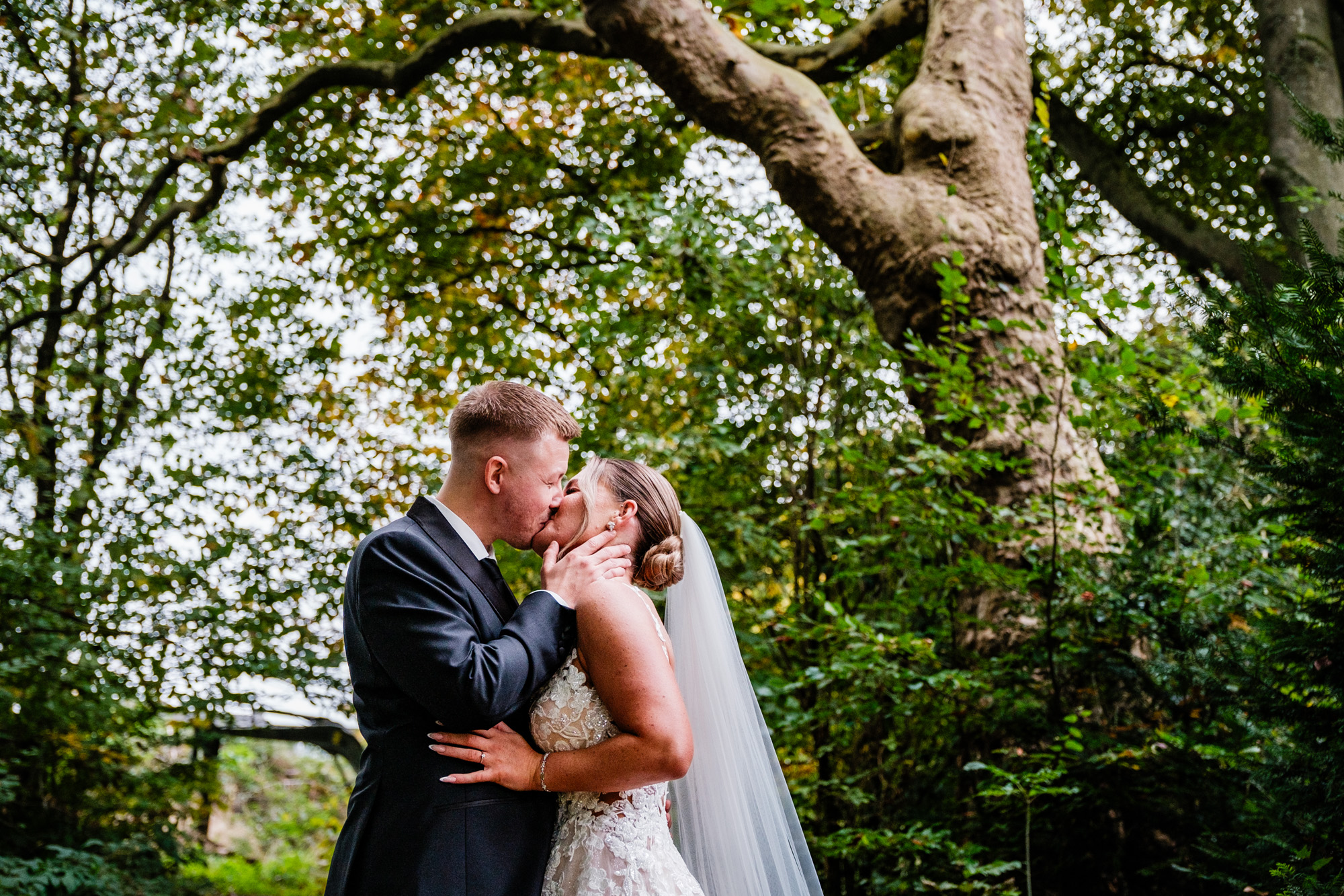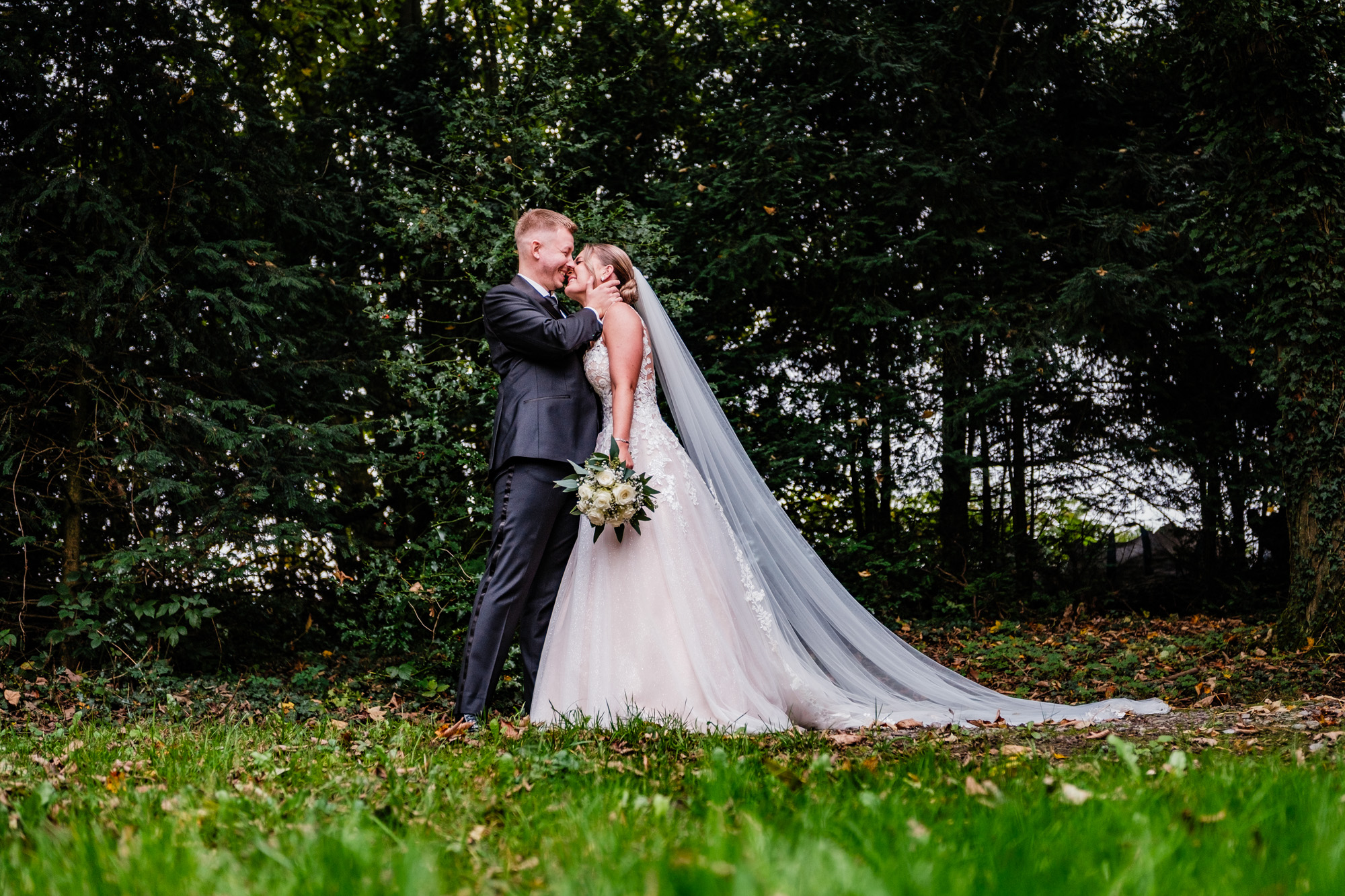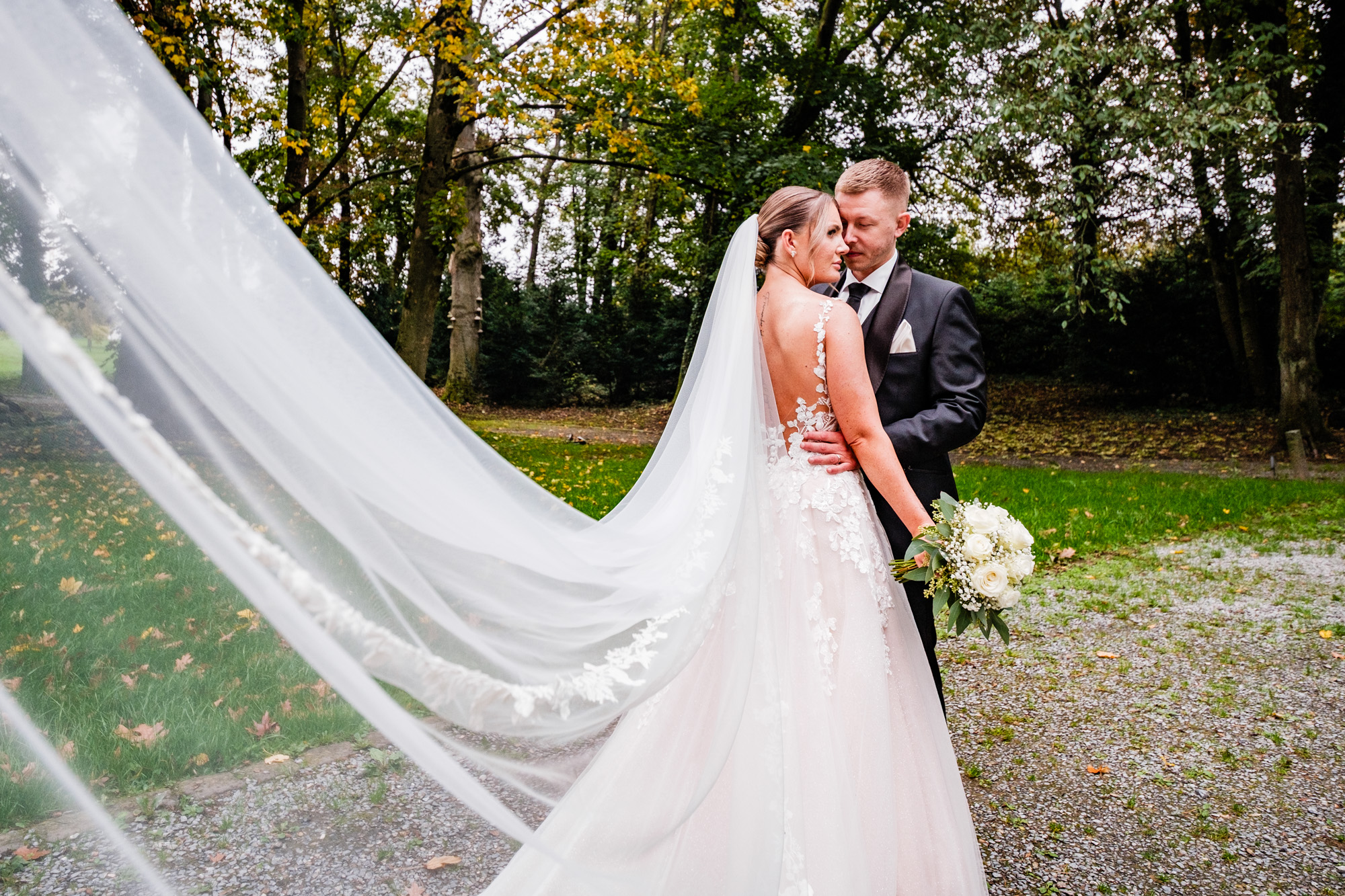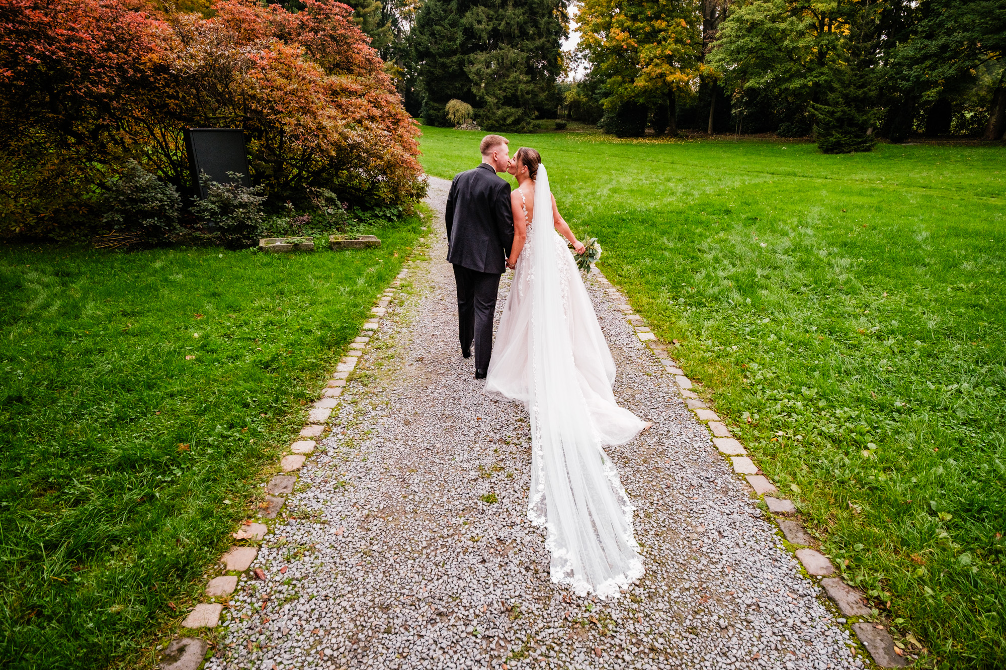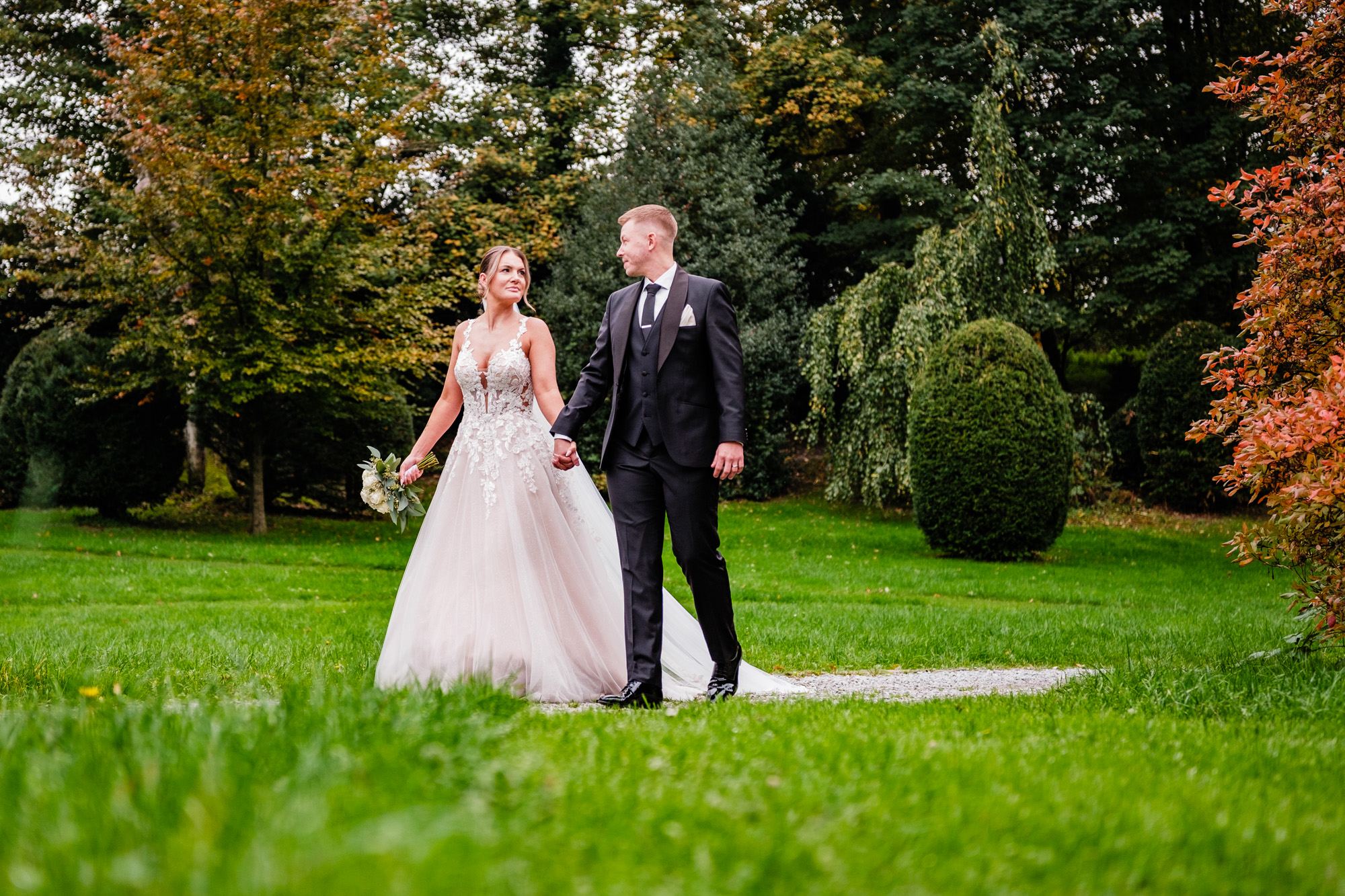 Nach der emotionalen Zeremonie und ein paar Gruppenbildern vor der Kirche fuhren wir weiter zum Sektempfang im Schloss Grünewald in Solingen – einer traumhaften Kulisse, die ich als Hochzeitsfotograf Solingen wieder gern besuche. Das Schloss, umgeben von einem schönen parkähnlichem Gelände mit vielen Bäumen, Pflanzen und Wiesen bot die perfekte Bühne für viele schöne, natürliche Fotos. Es wurde angestoßen, gelacht, gratuliert – pure Freude, wohin man schaute.
